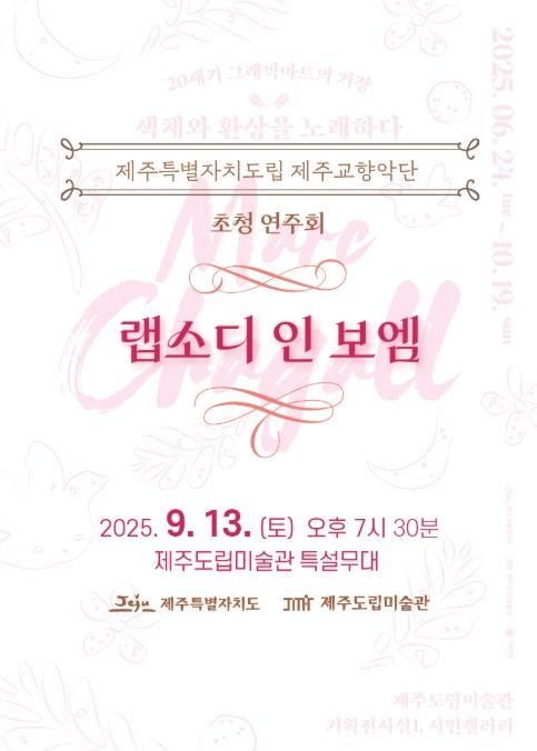 (포탈뉴스통신) 제주특별자치도 제주도립미술관이 현재 진행 중인《마르크 샤갈》과 《강태석》 기획전시와 연계한 특별 클래식 연주회를 개최한다.