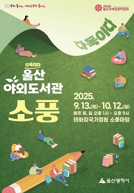 (포탈뉴스통신) 울산도서관은 오는 9월 13일부터 10월 12일까지 매주 토·일요일 태화강 국가정원 소풍마당에서 울산 야외도서관 ‘소풍’을 운영한다고 밝혔다.
