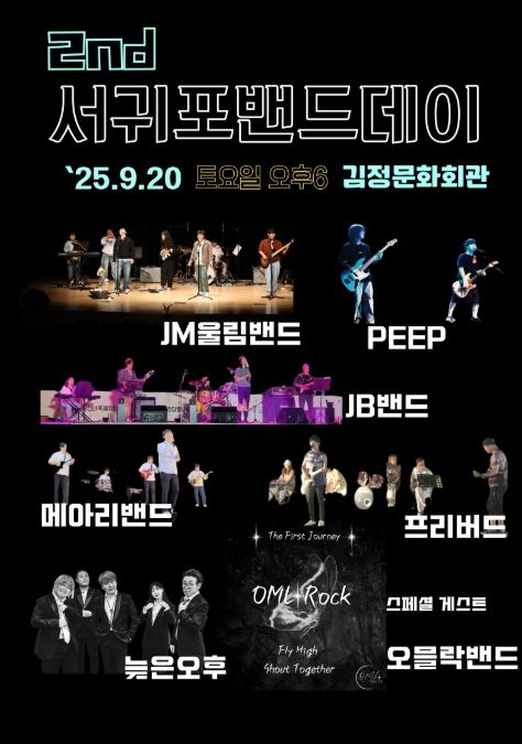 (포탈뉴스통신) 서귀포를 기반으로 활동하고 있는 평균 연령 40대의 직장인 밴드팀들이 작년에 이어 오는 9월 20일 오후 6시, 서귀포 김정문화회관에서 '제2회 서귀포 밴드데이'를 개최한다.