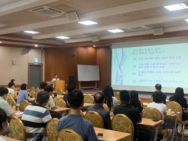 특히, 강연에서는 △민법상 혼인과 이혼의 구조 △부부 사이의 재산·자녀·노동 분배 문제 △배우자의 돌봄노동과 법적 지위(기여도, 위자료 등 사례) 등을 다루며, 평등한 가족 관계 정립을 위한 법적·사회적 인식 전환의 필요성을 강조했다. 또한 ‘성인지 감수성’의 관점에서 동등하게 돌보는 가족의 의미를 현실적인 언어로 풀어내 청중들의 큰 호응을 얻었다.