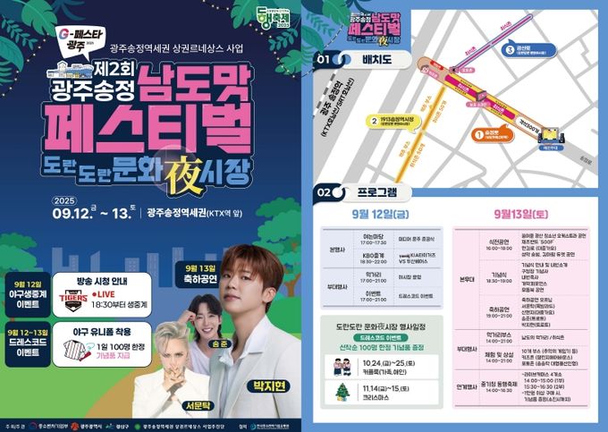 박병규 광산구청장은 “제2회 광주송정남도맛페스티벌이 단순히 먹거리 행사를 넘어 지역상권과 문화가 어우러진 종합 축제로 많은 사람이 광주송정의 맛과 멋을 느끼길 바란다”고 전했다.