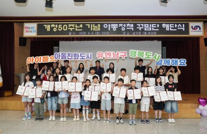 오은택 남구청장은 “아동의 눈높이 정책 제안에 대해 든든한 믿음과 감동을 받았다”며 “오늘 해단식은 끝이 아니라 새로운 시작이고 아동 한 사람 한 사람이 남구의 내일을 밝혀 줄 것이다”라고 단원들을 격려했다.