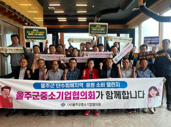 (포탈뉴스통신) (사)울주군중소기업협의회는 지난 9일 집중호우로 인해 단수 피해를 입은 소상공인들을 위하여 울주군 삼남읍에 위치한 한 식당에서 9월 정기 이사회를 개최하고, ‘단수 피해 소상공인 응원 소비 챌린지’에 동참했다.