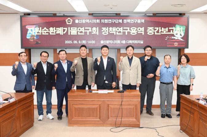 (포탈뉴스통신) 울산광역시의회 자원순환폐기물연구회(회장 공진혁 의원)는 9월 9일 오후, 자원순환 폐기물 관리 체계 개선을 위한 정책연구용역 중간보고회를 개최했다. 이번 보고회는 연구 진행 상황을 점검하고 향후 과제를 논의하기 위해 마련됐다.