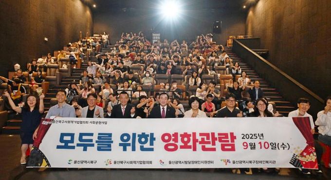 (포탈뉴스통신) 울산 북구사회적기업협의회는 10일 진장CGV에서 발달장애인의 영화관람을 지원했다.