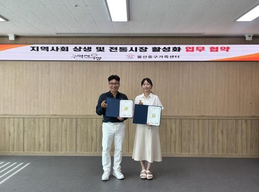 한편, 울산중구가족센터는 이번 협약의 일환으로 오는 9월 27일 한국동서발전(주)의 후원을 받아 구역전시장에서 취약계층 가정과 함께하는 추석맞이 전통시장 장보기 행사를 열 계획이다.