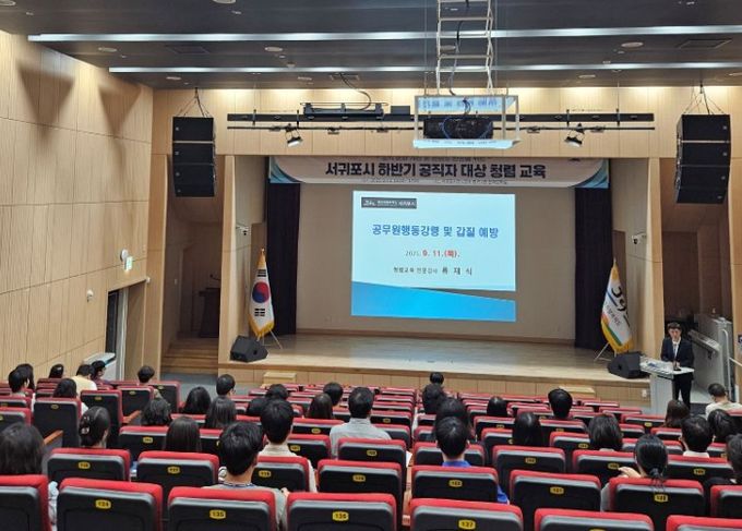 (포탈뉴스통신) 서귀포시는 11일 시청 문화강좌실에서 서귀포시 공직자 150여명을 대상으로 직장 내 괴롭힘, 갑질행위 발생을 예방하고 공무원 행동강령 등 반부패 법령에 대한 이해도를 높이기 위한 청렴 교육을 실시했다.