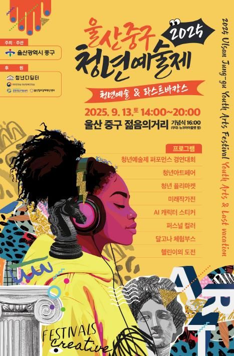 (포탈뉴스통신) 울산 중구가 오는 9월 13일 오후 2시부터 8시까지 중구 성남동 젊음의거리 일원에서 ‘2025 울산 중구 청년예술제’를 개최한다.
