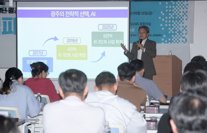 특히 강 시장은 “인공지능(AI) 2단계 사업을 통해 향후 5년간 인공지능 융복합 기업 총 1000개사를 집적화하고, 국가AI데이터센터와 연계해 시너지 효과를 낼 수 있다”며 국가AI컴퓨팅센터의 광주 유치 필요성을 설명했다.