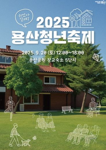 (포탈뉴스통신) 서울 용산구는 오는 9월 20일 ‘청년의 날’을 맞아, 도심 속 이색적 공간으로 떠오른 용산공원 장교숙소 5단지(서빙고로 221)에서 '2025 용산 청년축제 ‘쉬었다 갈래?’'를 개최한다고 밝혔다.