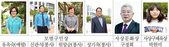 사상구는 현지사실조사 및 공적심사위원회 등 공정한 심사를 통해 애향, 봉사 2개 부문의 모범구민상 4명과 사상문화상 1명, 사상구체육상 1명을 각각 선정했다.
