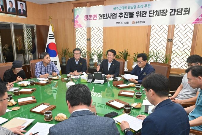 (포탈뉴스통신) 울주군의회 최길영 의장은 15일 의장실에서 웅촌면 주민대표들과 간담회를 갖고, 지역의 주요 현안에 대한 의견을 청취했다.