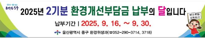 (포탈뉴스통신) 울산 중구가 2025년 2기분 환경개선부담금 4,410건, 2억 7,000여만 원을 부과했다.