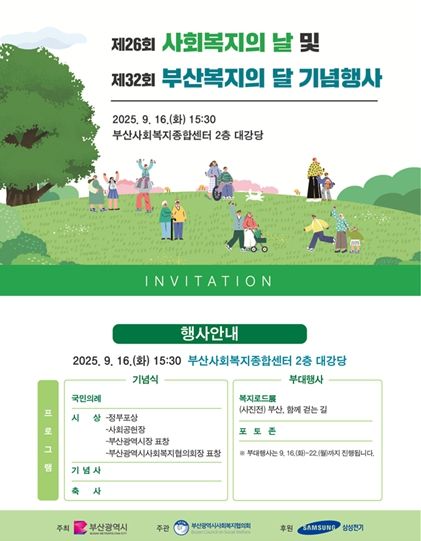 아울러, 9월이 복지의 달인 만큼 이번 기념식이 그간 부산지역 복지 발전을 위해 노력해 온 유공자들을 격려하는 의미 있는 자리가 될 것으로 기대한다.