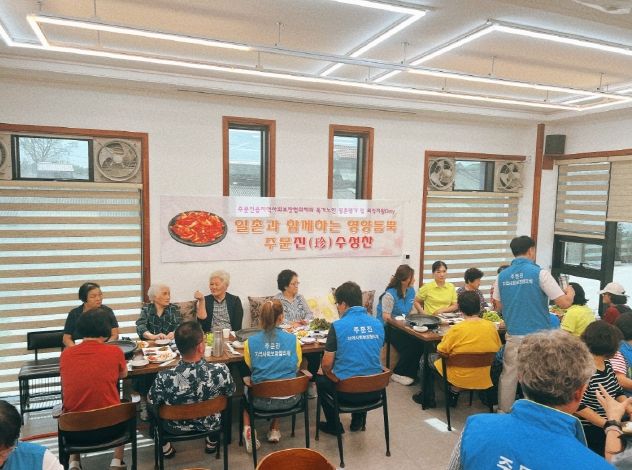 (포탈뉴스통신) 주문진읍 지역사회보장협의체 공동위원장(조태란, 문임춘)은 지난 15일 협의체와 독거노인 일촌 맺기 및 외식지원데이 사업인 '일촌과 함께하는 영양듬뿍 주문진(珍)수성찬'을 실시했다.