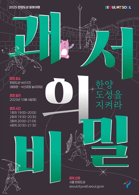 (포탈뉴스통신) 서울시는 오는 10월 4일 밤, 한양도성 낙산구간에서 ‘한양도성 달빛야행’을 개최한다. 올해 달빛야행은 ‘괘서의 비밀 : 한양도성을 지켜라’를 주제로 몰입형 미션투어로 진행된다. 참가자들은 조선시대 도성수비대가 되어 가짜뉴스의 진상을 파악하고 범인을 추적하는 미션을 수행하게 된다.