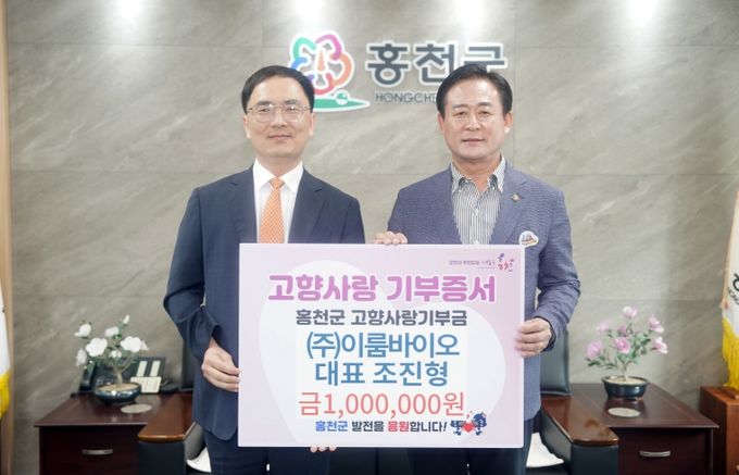 (포탈뉴스통신) ㈜이룸바이오(대표 조진형)는 9월 15일 홍천군을 방문해 고향사랑기부제 활성화를 응원하며 100만 원을 기탁했다.