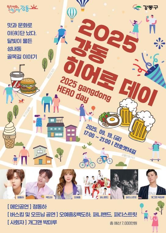 (포탈뉴스통신) 강동구가 오는 9월 19일 오후 5시부터 9시까지 성내동 천호옛길 일대에서 지역 골목상권 활성화를 위한 골목 축제 ‘2025 강동히어로 데이!!’를 개최한다고 15일 밝혔다.