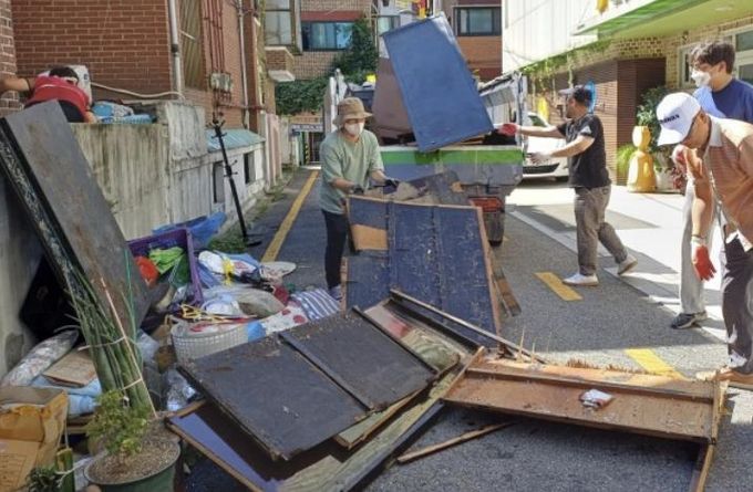 장애인연합회(회장 박근용)는 해충 방역을 실시하고, 소속 봉사자 13명과 함께 청소행정과와 협조하여 2.5톤 차량 4대 분량의 쓰레기를 처리했다. 이후 장판 교체, 싱크대와 찬장 설치 등 긴급 환경 공사가 이어졌으며, 10일에는 도배 작업도 완료했다.