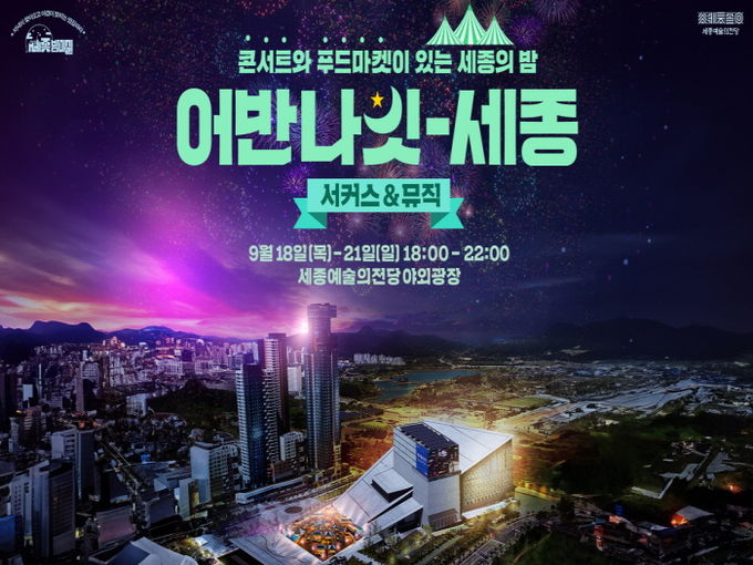 (포탈뉴스통신) 세종시문화관광재단은 오는 9월 ‘밤마실 주간’에 맞춰 18일부터 21일까지 나흘간 세종예술의전당 야외광장에서 매일 저녁 6시부터 10시, 야간 문화행사 ‘어반나잇-세종 서커스·뮤직’ 을 선보인다.