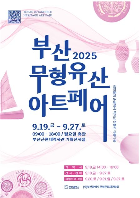 (포탈뉴스통신) 부산시는 오는 9월 19일부터 27일까지 부산근현대역사관에서 무형유산 보유자들의 전통예술 작품을 전시·판매하는 '2025 부산 무형유산 아트페어'를 개최한다고 밝혔다.