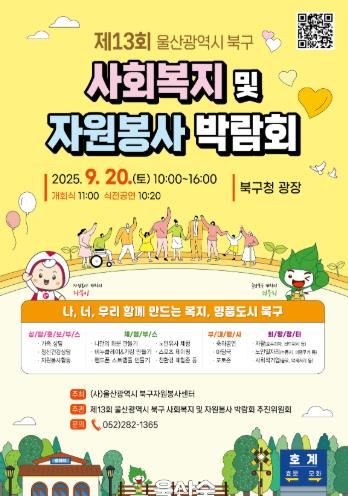 이번 박람회는 '나, 너, 우리 함께 만드는 복지, 명품도시 북구'를 슬로건으로, 사회복지기관, 자원봉사단체 등 74곳이 참여해 54개 부스를 운영, 주민 누구나 참여할 수 있는 다채로운 프로그램을 마련한다.