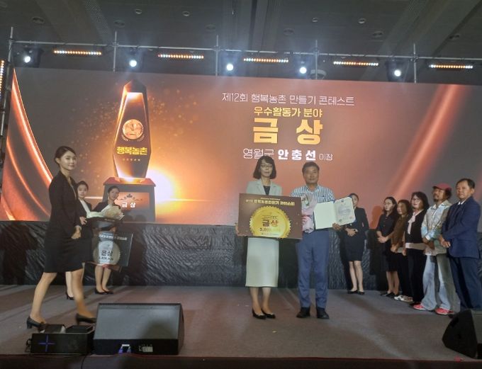 (포탈뉴스통신) 영월군은 운학1리 이장 안충선 씨가 2025년 9월 17일 과천 한국마사회 럭키빌에서 열린 '제12회 행복농촌 만들기 콘테스트'에서 우수활동가 분야 금상(장관상)을 수상했다고 밝혔다.