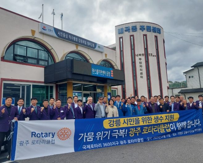 (포탈뉴스통신) 국제로타리3600지구 광주로타리클럽(회장 김영근)은 19일 가뭄으로 힘든 시간을 보내고 있는 강릉 내곡동 주민들을 위한 생수(500㎖) 9,600병을 내곡동주민센터에 전달했다.