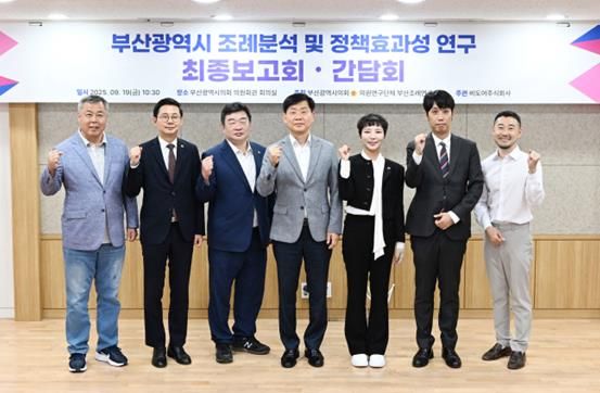 (포탈뉴스통신) 부산시의회 의원연구단체 '부산조례연구회'가 9월 19일 오전 10시 30분 부산시의회 의원회관 회의실에서 『부산광역시 조례분석 및 정책 효과성 연구』 최종보고회를 개최했다.