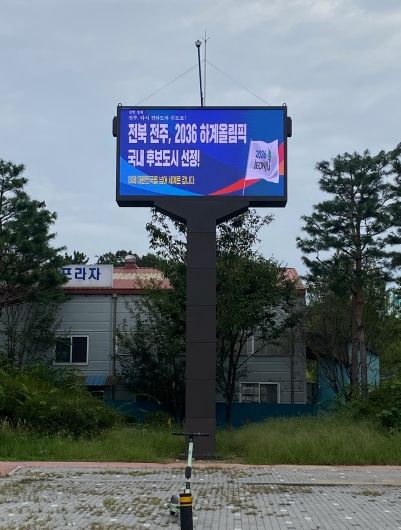 시는 지난해 12월 완산구 통일광장사거리에 LED 전자게시대 1기를 설치해 공공광고를 대상으로 시범 운영해왔으며, 지난 6월 덕진구 화개네거리에 1기의 게시대를 추가 설치했다.