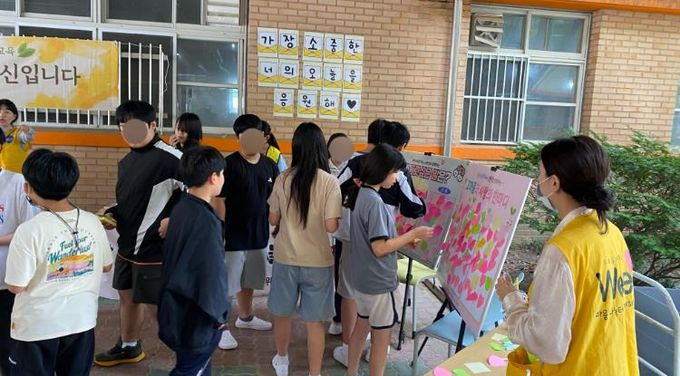 또래상담을 담당하고 있는 학생들은 생명존중 캠페인 운영에도 함께 참여하며 적극적인 공감과 소통의 자세를 실천했다.