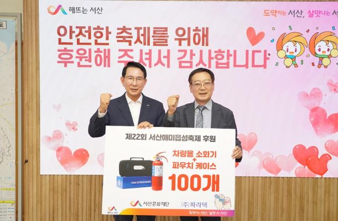 이완섭 서산시장은 “축제의 안전을 위해 귀중한 물품을 기탁해주신 ㈜파라텍에 깊이 감사드린다”며 “서산시와 문화재단도 안전하고 품격 있는 축제를 만들기 위해 최선을 다하겠다”고 전했다.