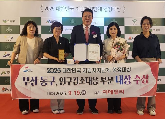 (포탈뉴스통신) 부산 동구가 9월 19일 서울 중구 KG타워 하모니홀에서 열린『2025 대한민국 지방자치단체 행정대상』시상식에서 인구감소대응부문 대상을 수상했다고 밝혔다.