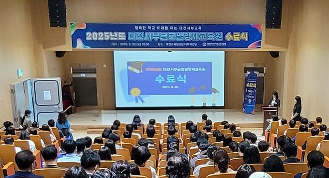 (포탈뉴스통신) 대전서부교육지원청 서부글로벌영재교육원은 9월 20일 대전교육정보원 다목적 강당에서 영재교육 수료 학생 99명과 학부모, 지도교사가 참여한 가운데 수료식을 개최했다.