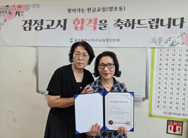 (포탈뉴스통신) 울산 북구는 '찾아가는 한글교실' 염포동 수강생 주복순(71) 씨가 제2회 중졸 검정고시에 합격했다고 22일 밝혔다.