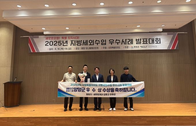 (포탈뉴스통신) 양양군은 지난 9월 19일 강원도 평창 모나 용평리조트에서 열린 ‘2025 지방세외수입 우수사례 발표대회’에서 신규수입원발굴 부문 우수상을 수상했다.