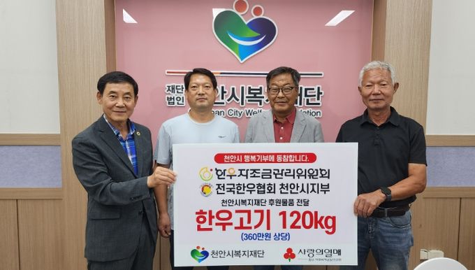 (포탈뉴스통신) (재)천안시복지재단은 22일 한우자조금관리위원회와 전국한우협회 천안시지부가 360만 원 상당의 한우 국거리 120kg를 기탁했다고 밝혔다.