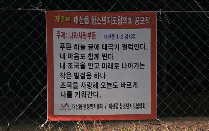 당선작을 낸 학생에게는 표창장과 함께 10만 원 상당의 문화상품권이 시상되며, 당선작은 대산읍 관내 중학교에 게시될 예정이다.