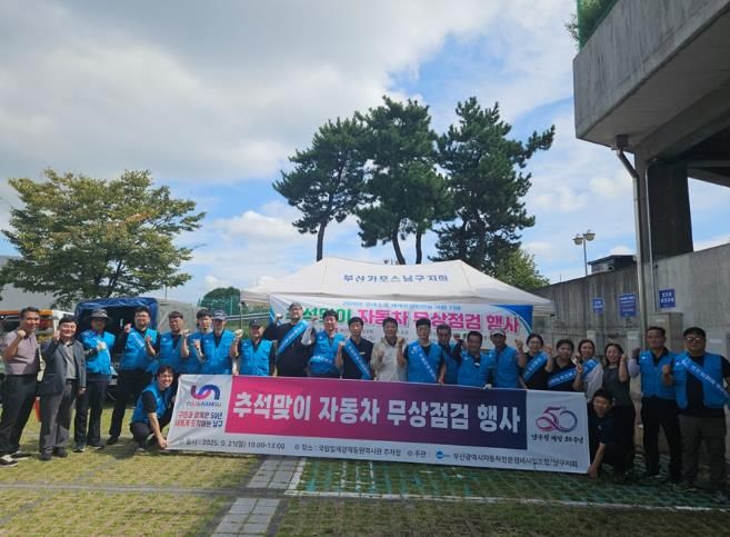이번 행사는 부산광역시 자동차전문정비사업조합 남구지회(지회장 박덕종)의 주관으로 진행됐으며, 100여 대의 차량이 점검을 받았다.