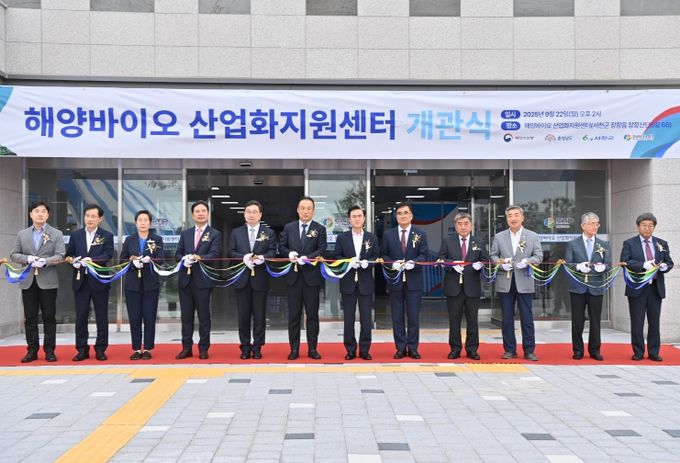 도에 따르면, 해양바이오 산업화지원센터 개관식이 22일 서천 장항국가생태산업단지 서해권역 해양바이오 클러스터에서 김태흠 지사 등 150여 명이 참석한 가운데 개최됐다.