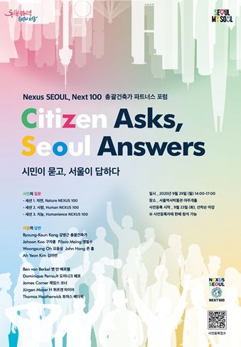 (포탈뉴스통신) 서울시는 오는 9월 29일 오후 2시, 서울역사박물관 야주개홀에서 『Nexus 서울 Next100: 제2차 총괄건축가 파트너스 포럼』을 개최한다. 이번 포럼은 지난 3월 21일 열린 제1차 포럼의 연속 기획으로, 제시된 미래도시 비전에 대해 이번에는 시민이 질문하고 전문가가 답하는 공론의 장이다.