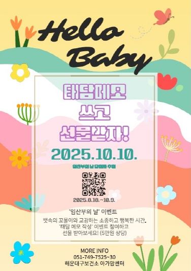 이번 이벤트는 임산부의 날의 의미를 되새기고, 뱃속 아기와 교감하는 소중한 시간을 제공하며 건강한 출산을 응원하기 위해 마련됐다. 참여는 8월 18일부터 10월 9일까지 가능하며, QR코드를 통해 온라인으로 태담 메모를 작성하면 된다. 참여자 중 100명을 추첨해 5만 원 상당의 출산 지원 용품을 선물할 예정이다.