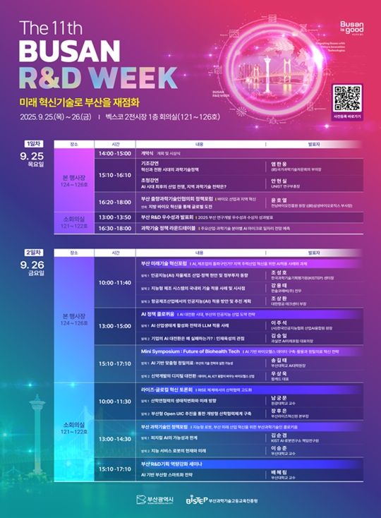 행사는 관심 있는 시민 누구나 무료로 참여할 수 있으며, '부산 연구개발(R·D) 주간' 누리집에서 사전 등록을 통해 참여할 수 있다.