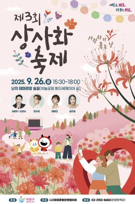(포탈뉴스통신) 마포구는 9월 26일 난지 테마관광 숲길에서 ‘사랑하기 딱 좋은 날’이라는 주제로 (사)마포문화관광협의회 주관 ‘제3회 마포구 상사화 축제’를 개최한다.