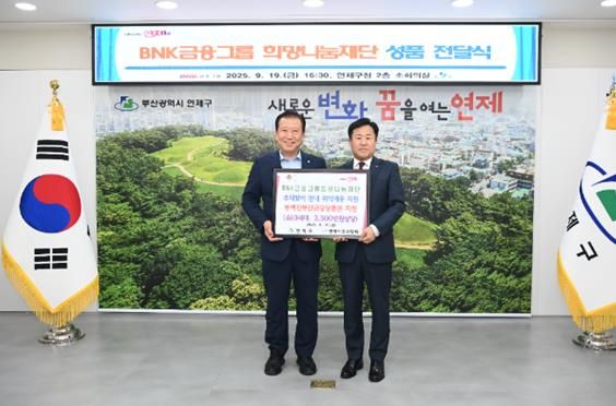 (포탈뉴스통신) 연제구는 9월 19일 BNK금융그룹 희망나눔재단으로부터 저소득 취약계층을 위한 동백전 선불카드(부산지역화폐 2,300만 원 상당)를 기탁받았다.