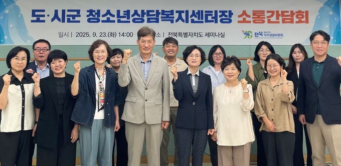 (포탈뉴스통신) 전북특별자치도 자치경찰위원회는 9월 23일 도청 세미나실에서 ‘도·시군 청소년상담복지센터장 소통 간담회’를 개최하고, 학교폭력 예방과 위기청소년 보호를 위한 다양한 현장의 목소리를 청취했다고 밝혔다.