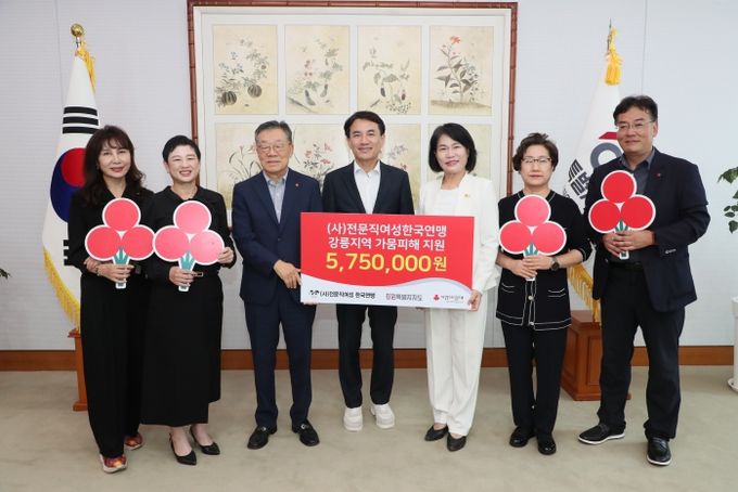 (포탈뉴스통신) 강원특별자치도는 9월 23일, (사)전문직여성 한국연맹 최예담회장이 도청을 방문해 강릉 가뭄피해 지원을 위한 기부금(5,750,000원)을 전달했다고 밝혔다.