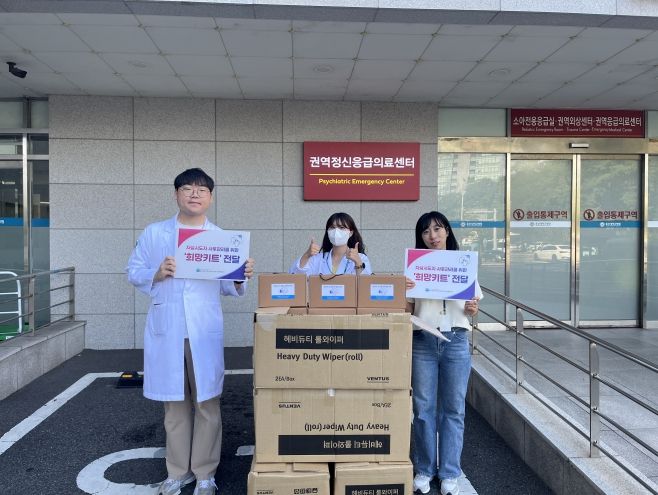 ‘희망키트’는 수면안대, 허브차, 아로마 오일 등 심리적 안정을 도울 수 있는 물품과 함께, 지역 내 정신건강 서비스 정보를 담은 안내문 등이 담겨있으며, 응급실 내원 후 불안과 불편감을 겪는 자살 시도자에게 실질적인 도움을 제공하고자 마련됐다.
