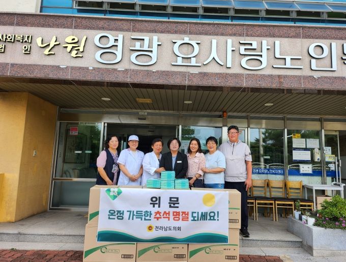 (포탈뉴스통신) 전라남도의회 오미화(진보당·영광2) 의원이 추석 명절을 앞둔 9월 24일, 영광군 법성면 ‘영광효사랑노인복지센터’를 방문해 어르신들과 종사자들을 격려하고 위문품을 전달했다.