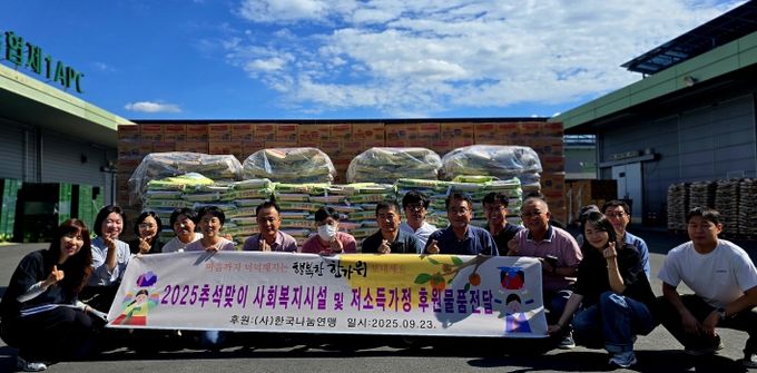 (포탈뉴스통신) (사)한국나눔연맹은 9월 23일 추석맞이 관내 사회복지시설 및 저소득가정에 쌀 1,000포, 라면 1,000박스, 과자 1,000박스(7천3백만원상당)를 전달했다.